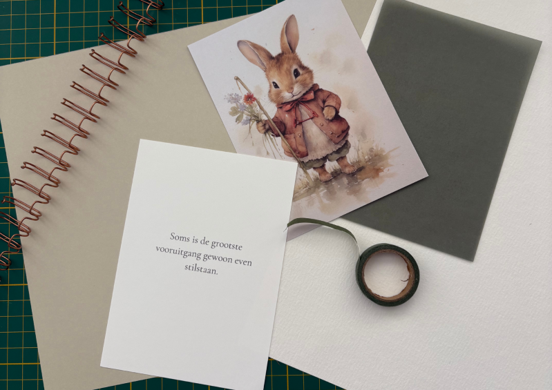 Een klein online winkeltje vol zachte spulletjes — kaartjes en boekjes die je even laten stilstaan. Alles wat je hier vindt, maak ik zelf met papier, inkt en een vleugje humor. Niet perfect, wel echt.