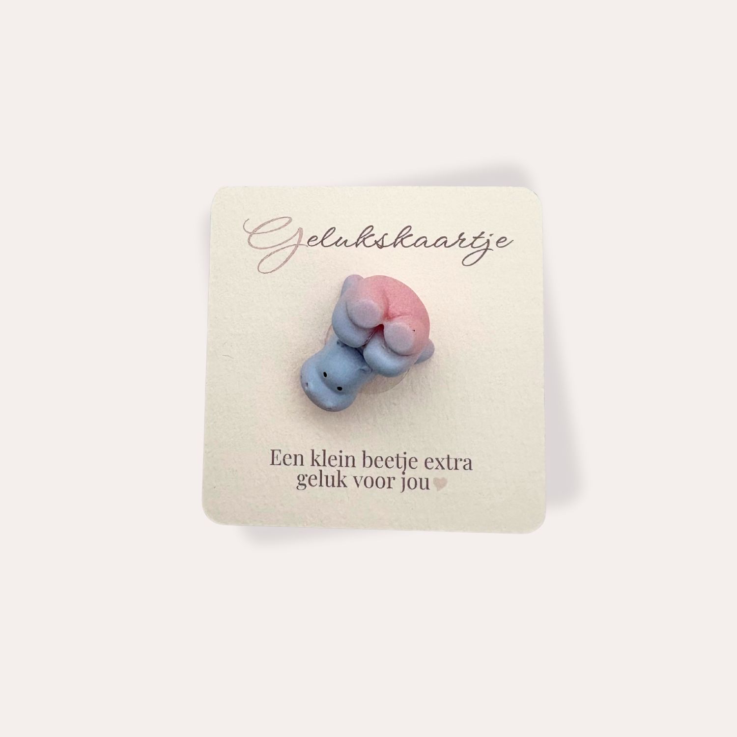 Dit gelukskaartje met een mini-nijlpaardje is een lief, luchtig cadeautje dat zegt: