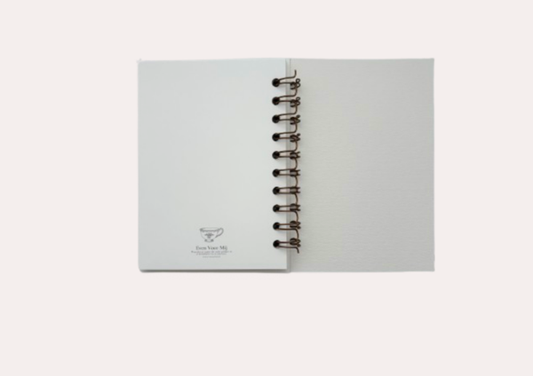 Binnenin vind je 96 pagina’s van stevig biotop papier (120 grams), fijn om op te schrijven, tekenen of wat losse gedachten te bewaren.