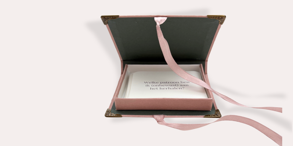In dit luxe handgemaakte doosje vind je 20 reflectiekaarten met korte, uitnodigende vragen om bij stil te staan.