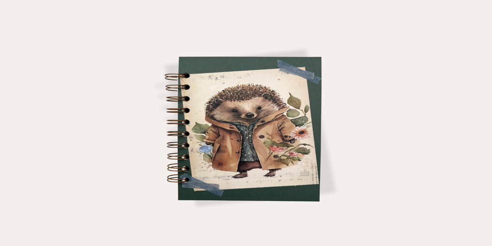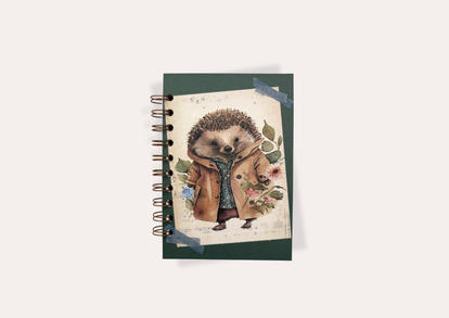 Uniek handgemaakt notitieboekje met egel. A6 formaat, 48 bladzijden op 120 grams Biotop papier. Perfect voor journaling, schrijven en notities. Eén exemplaar beschikbaar – op = op.