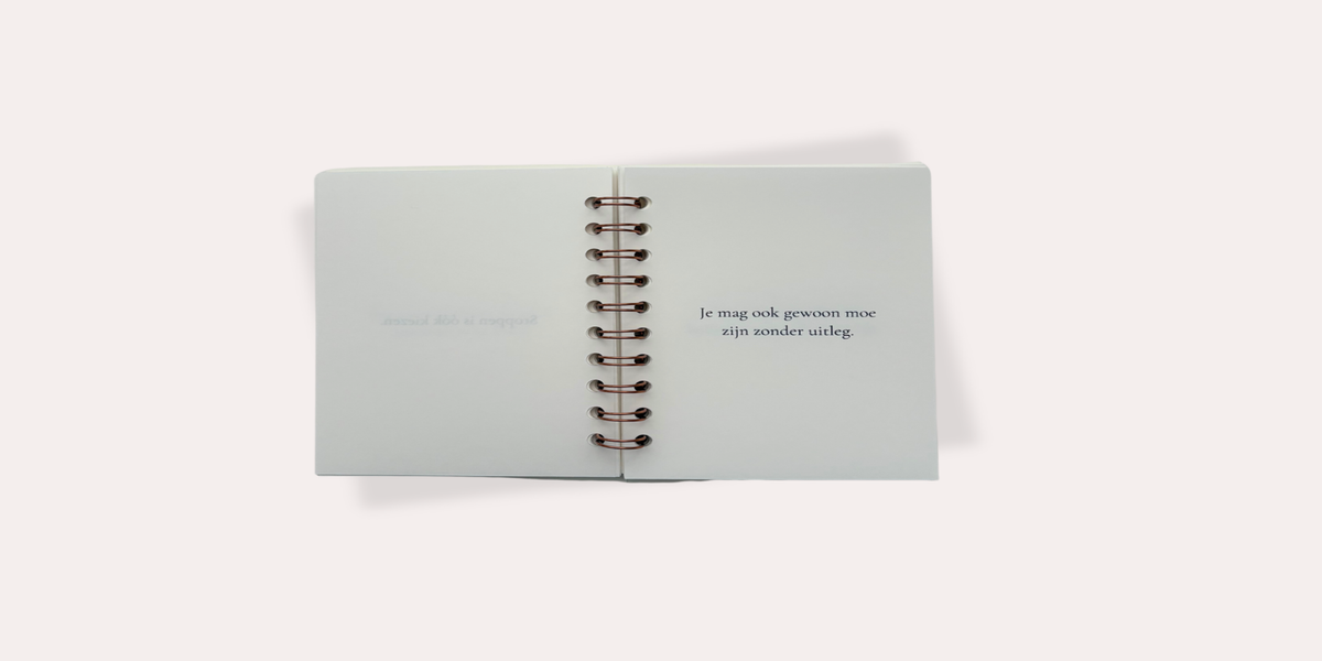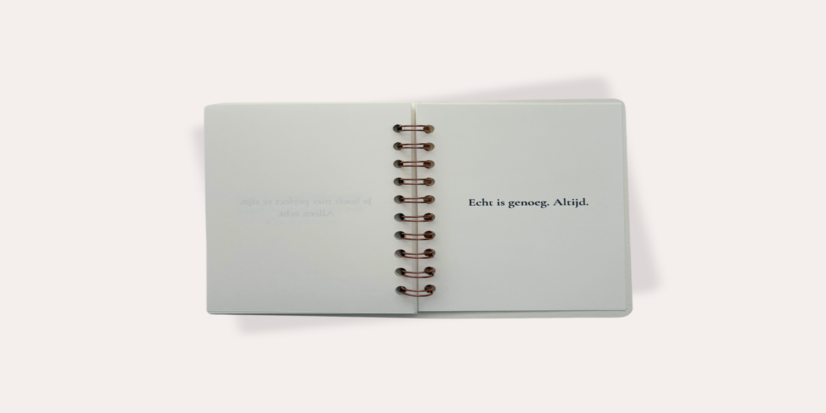 Eerlijk papier, zichtbare binding, woorden die raken zonder te willen troosten.