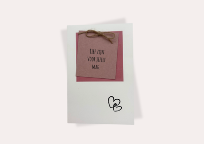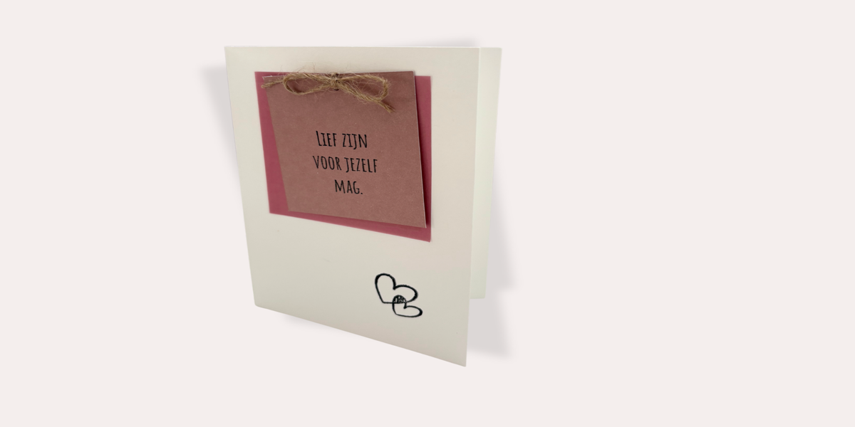 ♡ Handgemaakte kaart met opdruk: “Lief zijn voor jezelf mag”